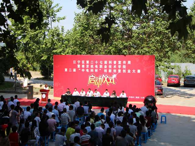 5月21日下午,作为江宁区第二十七届科普宣传周活动之一的学院第二届“中电科杯”创新创意创业大赛启动仪式在育德楼广场隆重举行。本次大赛由我院与麒麟街道、江苏中电科电气集团有限公司共同举办,江宁区科技局张学强副局长、麒麟街道张国顺部长、李隽主任,江苏中电科电气集团有限公司孟庆一总经理,南京特斯拉职能科技有限公司田波总经理,学院周庆礼院长、陈赵副院长、顾益明副院长以及学院中层干部、师生代表共300多人出席启动仪式。仪式由科研及校企合作处李木香处长主持。