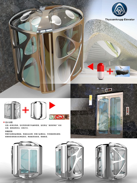 今年六月中旬,蒂森克虏伯(中国)电梯公司发出了校园电梯轿厢创意设计的项目征集活动,全国各大赛区共227所高校应邀参加创意大赛,各高校积极筹备,选手发挥了天马行空的想象,对未来电梯功能外形以及运行模式做出了大胆的创新。九月中旬,各分赛区比拼结果出炉,我院蓝岛创行队获得了华东赛区第一的好成绩,也为征战全国决赛奠定了基础。决赛过程中,各个高校代表队也卯足了劲从各个方面展现了自己的创意和与众不同。蓝岛创行队成员对电梯轿厢的安全性和外形美做足了功课,以胶囊+鸟巢的创意外形和独有的工程力学安全设计使轿厢在保障安全性能的同时,展现中国古代园林艺术中的镂空设计和现代简约之美。为了更直观展现作品的设计,他们充分发挥学院优势,3D打印了一个电梯模型,获得了评委以及场内高校同学的高度评价。