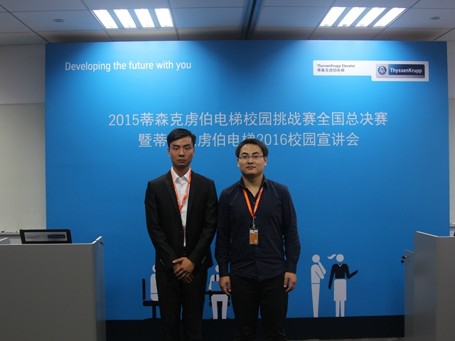 10月23日,由蒂森克虏伯电梯(中国)主办的蒂森克虏伯电梯校园创意挑战赛决赛在上海松江区的公司总部如期举行,来自全国七大赛区的区域优胜团队集聚上海总部争夺全国桂冠。他们从全国227支代表队中脱颖而出,我院机械工程系蓝岛创行队作为华东赛区的优秀选手参加本次决赛答辩。经过一天的激烈角逐,最终以评委得分73.3分,微信投票得分4.9分,总分78.3分获得全国第四名的好成绩。