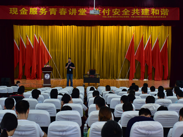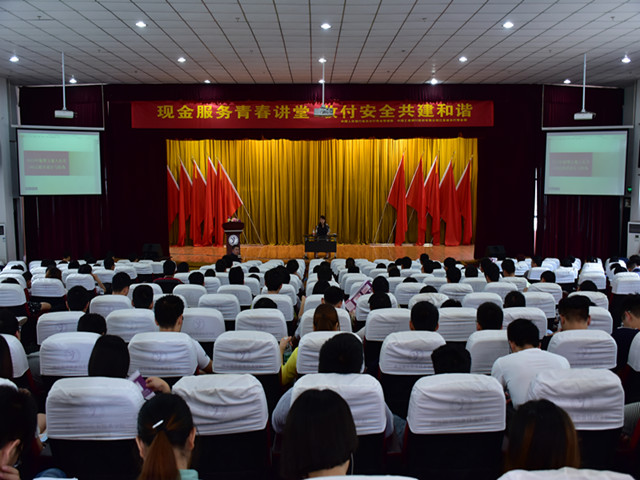 2016年6月7日中午13点学生处组织2014、2015级在校的学生骨干400多人,在学院报告厅开展了“现金服务青春讲堂,收付安全共建和谐”的主题活动。