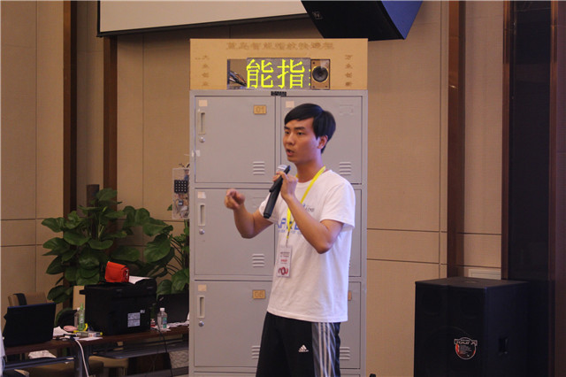 第二支队伍是14号蓝岛创客队,为现场创客伙伴带来的是便携式移动智能鞋,其中的GPS系统可以随时给人定位,并且利用人体重力走步充电,节省了充电环节。我们的小伙伴还加入手机APP有范围呼叫功能,让鞋子变得与众不同。