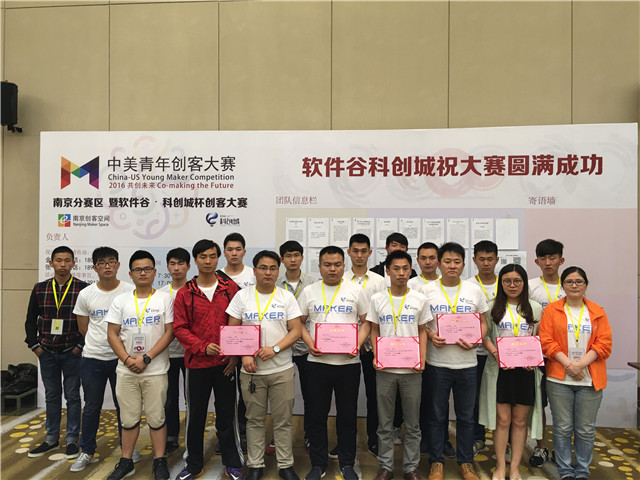 2016年6月12日,中美青年创客大赛南京赛区选拔赛迎来了收官之战。历经了48小时艰苦卓绝、不眠不休的创作之后,我院蓝岛创客团队四项作品均获得了优秀奖,作为参加人数和项目数最多的团队,我院蓝岛创客空间也荣获了最佳组织奖。