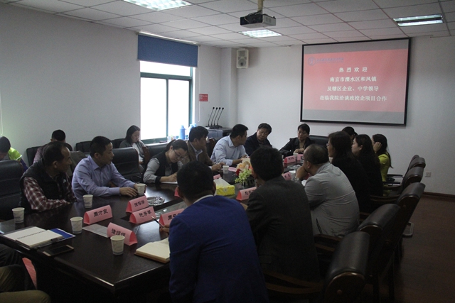 5月9日上午,溧水区和凤镇副镇长武球发、季玲及辖区企业(南京高崎电机有限公司、传仕重工(苏州)有限公司、南京良高金属制品有限公司)领导和风初级中学、孔镇初级中学代表一行莅临我院洽谈校企合作事宜。学院副院长陈赵、赵学洪,科研及校企合作处处长李木香及系部领导出席洽谈会。