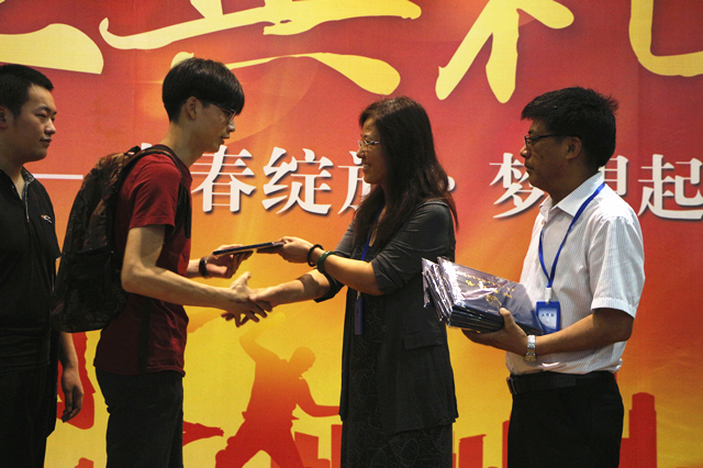 学院党委书记、院长周庆礼为在文化学习、专业技能、创新创业、文体活动、社会工作、志愿服务、自强自立等方面表现突出的毕业生颁发“蓝岛•鹰”奖章,并为1589名毕业生行前赠言。周院长希望毕业生们以创新的勇气走向创业的征途,以创客的思维开启属于自己的时代;用创客的精神,做时代的创客;和母校一起,不断尝试、勇于探险,以敏锐的洞察力掌握创新的方法,在不断创新中走向成功;秉承创客理念,鼓起创新勇气,探寻创新方法,让创新成为同学们的DNA。