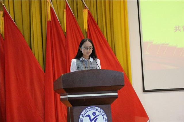 首先,院团委文体部姚美琳同学作为此次受培训的学生代表发言。她表示学生干部不仅仅是个名词,它还隐藏了很多,比如责任、使命、义务等。学生干部意味着不同于其他学生的使命,每一个学生干部都应该有为同学、为学院、为社会尽责服务的意识,并且能将其落实到具体的行动中去。