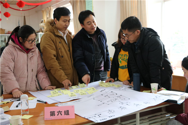 分组研讨期间,参会人员根据会议安排组建讨论小组,领取讨论议题,选定组长和秘书,小组成员结合议题独立思考形成个人观点,并在组长的引领下采用头脑风暴法、六顶帽子法等方法展开讨论,逐步明晰讨论议题“存在的问题”、“解决方案”、“预期成效”,形成小组意见。同时,由学院院长周庆礼、常务副院长顾益明、副院长郭朝辉、副院长赵学洪、副院长刁爱军、工会主席孔德丽组成的观察员小组,总体指导各小组研讨方向,积极为各小组议题讨论出谋划策。