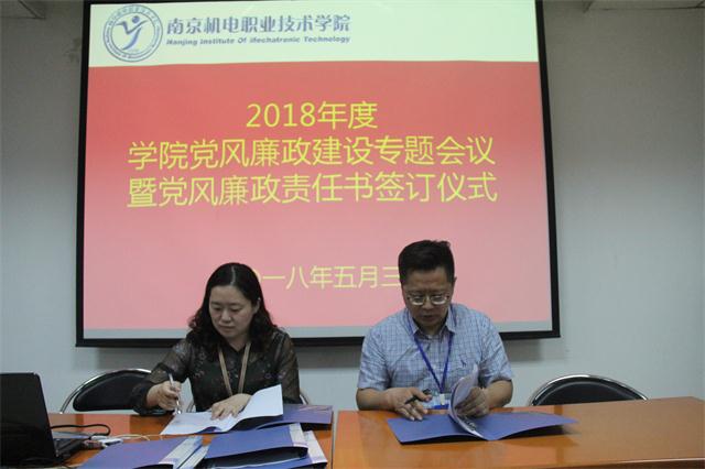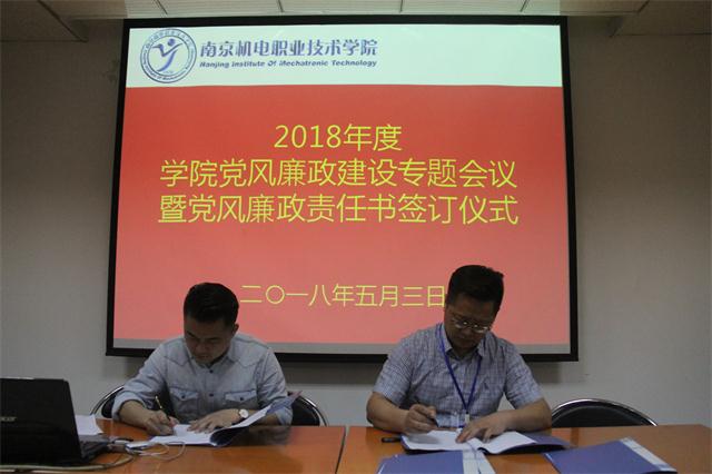 为深入贯彻十九大精神,按照“党要管党、全面从严治党”的要求,增强干部全面从严治党主体责任意识,扎实推进党风廉政建设责任制的落实,进一步传导压实党风廉政建设责任,学院党委于2018年5月3日13:30在弘德楼107会议室召开了学院2018年度学院党风廉政建设专题会议暨党风廉政责任书签订仪式,会议由工会主席、纪委副书记、办公室主任孔德丽主持,全院中层及以上领导参加了此次会议。