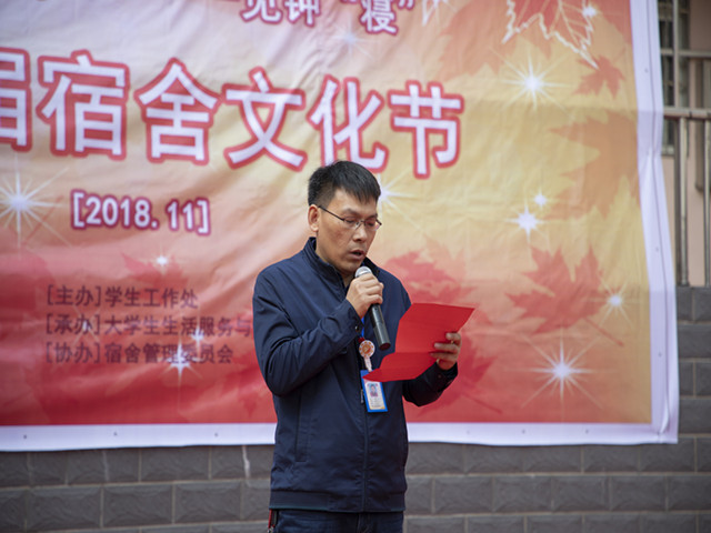 开幕式上学工处处长张宝中致辞:他提出通过每年举办宿舍文化节的活动,旨在形成良好的宿舍文化氛围。宿舍文化节的各项比赛和丰富的活动内容促使我院学生树立良好的人生观、价值观,以提高学生综合能力、拓展创新能力和团队合作精神。对我院学生综合素质提高,“三风一训”践行和体现有着积极的意义。