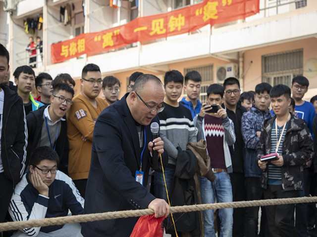 最后,在大家的期盼中,学院副院长赵学洪宣布本届宿舍文化节开幕,并为宿舍文化节的首场活动----别开生面的男女生拔河对决鸣响了第一哨。