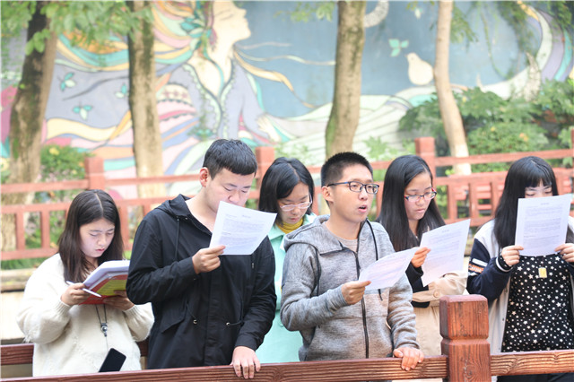 每日伴随着清晨的第一缕阳光,英语社的同学们来到了学校的智慧湖旁,早在七点的时候,英语社的负责人就已经来到了场地,准备着此次晨读所需要的材料。之后同学们陆陆续续的来到了现场,从负责人手上拿到了他们精心准备的晨读资料。同学们拿到资料后,就三五成群的分散在场地附近,全神贯注地开始了他们的晨读。单词、短语、美文、英语新闻等,同学们学习英语的方式五花八门,渠道良多。这是一个拥有青春活力的平台。这是一场莘莘学子的聚会,这是一场新世纪大学生的精神风貌,丰富南机电的人文气息,这是一幅智慧湖之英语社的完美画卷。