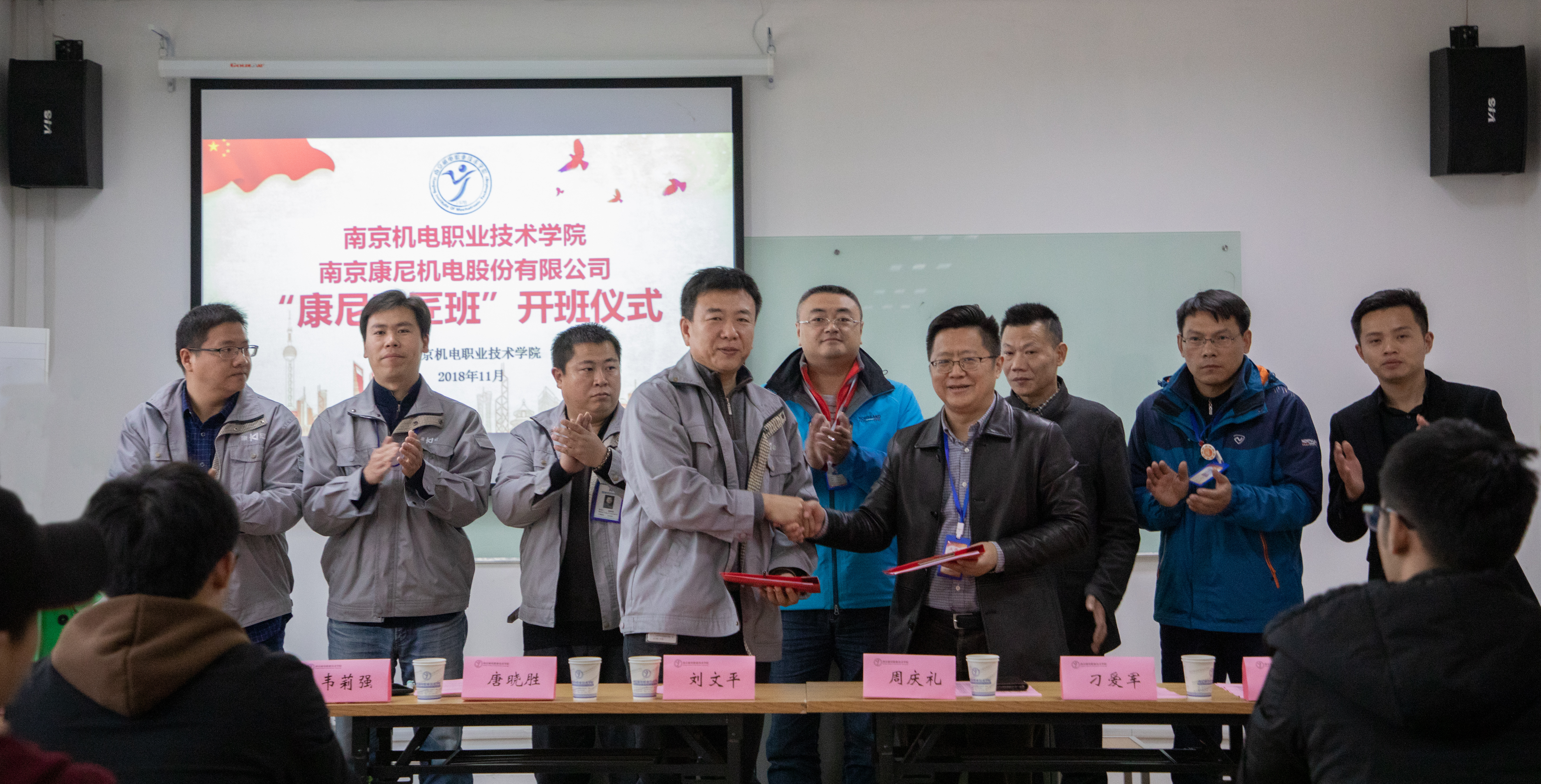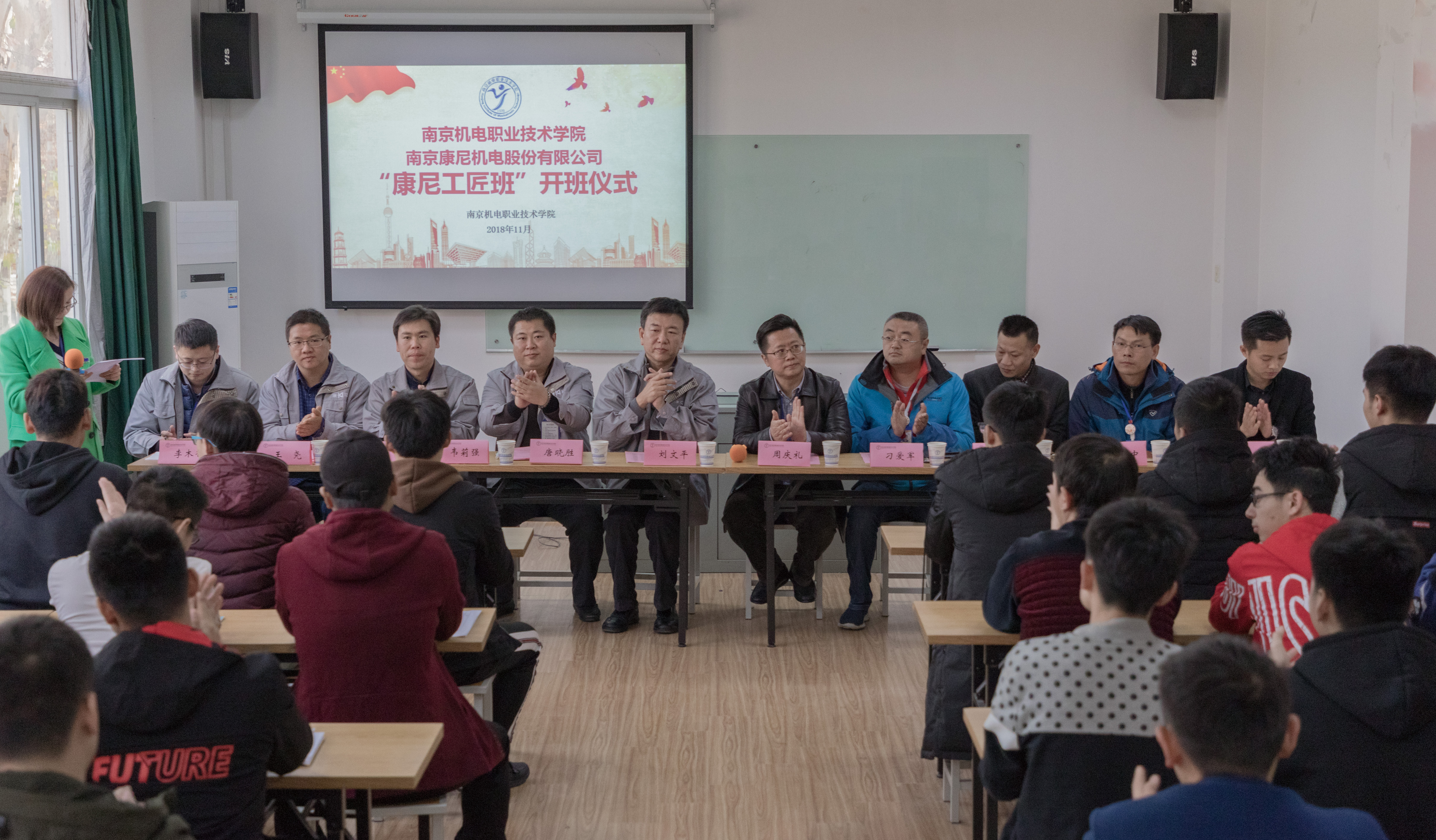 为弘扬大国工匠精神,强化学生专业技术,提升学生职业素养。11月27日,校企联合培养的“康尼工匠班”在开云手机官方版页面登录入口举行开班仪式。南京康尼机电股份有限公司副总裁、轨道交通事业总部总经理刘文平,轨道交通事业部总经理助理唐晓胜、综合管理部部长韦莉强、设计管理部部长卫晓勇、人力资源主管王尧,我院党委书记、院长周庆礼,副院长刁爱军,学生工作处处长张宝中、自动化工程系主任范世祥、党支部副书记高水冕出席开班仪式。开班仪式由科研及校企合作处处长李木香主持。