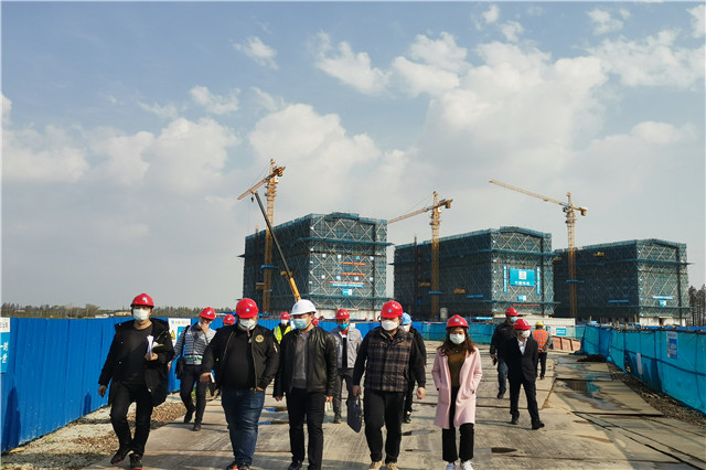 集团领导及专家就现场安全防护、消防装置、临时用电及机械设备等进行安全专项检查,并参观了学生宿舍楼施工情况。