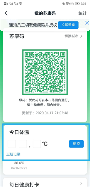 (3)填写“今日体温”,并提交。
