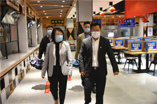 洪总一行实地查看了学院进出通道测温区设置、教学区、宿舍区、食堂就餐、防控物资储备、集中医学观察点。“师生活动轨迹是否清晰,防护物资是否齐备,消杀毒状况如何?”洪总看得认真、问得仔细,对不足之处,现场督促整改。为确保师生安全有序就餐,学院将原有的大学生活动中心改为临时就餐点,严格按照分隔用餐原则。同时,加强重点场所清洁消毒和通风,严格落实学院工作人员的个人防护措施。洪总对此表示肯定,并叮嘱学院紧盯食堂、教室、寝室等重点区域,严之又严、细之又细抓好各项防控措施。