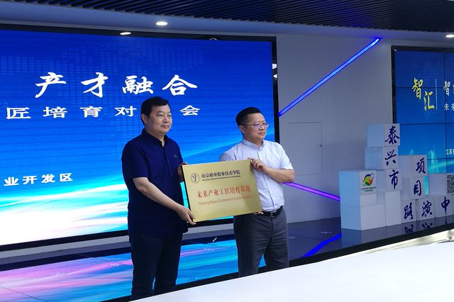 学院副院长刁爱军代表学院与江苏省泰兴高新技术产业开发区签订《产才融合战略合作协议》,学院党委书记、院长周庆礼向江苏省泰兴高新技术产业开发区授予“开云手机官方版页面登录入口未来产业工匠培育基地”铜牌。