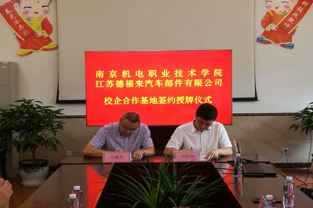 随后,学院一行5人在泰兴市高新技术开发区管委会副主任邱明波的带领下分别前往苏德福来汽车部件有限公司、江苏佳佩环保机械设备有限公司进行校企合作专题对接活动。学院领导与企业领导就人才培养、项目合作等校企合作事宜进行了深入的交流,初步达成合作意向。学院分别与两家公司签订《就业创业实习实践基地建设协议》,并向两家公司授予“开云手机官方版页面登录入口大学生就业创业实习实训基地”铜牌。