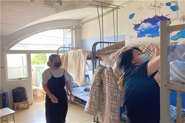 为进一步保障学生们身体健康,消除同学们的后顾之忧,营造良好学习生活环境,迎接后续入校的新生,8月20日,学工处组织宿管中心对2019级学生342间宿舍进行了整理打扫、开窗通风。宿管中心21名员工从早晨5点开始清扫行动,宿管阿姨们握着扫把,低身弯腰,将地板上的垃圾扫进畚斗,一间一间检查寝室环境卫生、开窗通风透气、细心整理归置物品、扫地清理垃圾。虽然南京的天气还是很炎热,但一想到能为学生带来舒适的居住环境,宿管阿姨们都干劲十足。清扫工作完成后宿管中心将对342间学生宿舍进行全封闭紫外线和84消毒处理,确保学生安全入住。