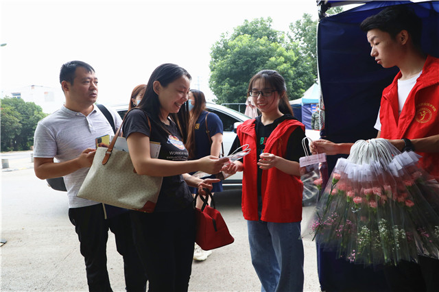 9月10日早晨8点,学院团委的学生们早早守候在校门口体温监测点,准备好包装精美的康乃馨,迎接老师们的到来,只为让他们踏进校园的第一时间收到祝福。“老师,您辛苦了!”“祝老师节日快乐!”,听着这一声声真挚的问候,接过一枝枝鲜艳的康乃馨,老师们的脸上写满了幸福与感动。