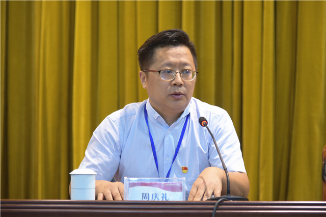 会议的最后一项议程是学院党委书记、院长周庆礼作《不忘初心担使命 立德树人育桃李》的报告。周院长总结了“十三五期间”学院在突围战略、专业建设、队伍建设、校企合作、科研创新、人才培养上取得的成绩,准确指出了学院存在的问题,并对下一阶段工作做了部署。