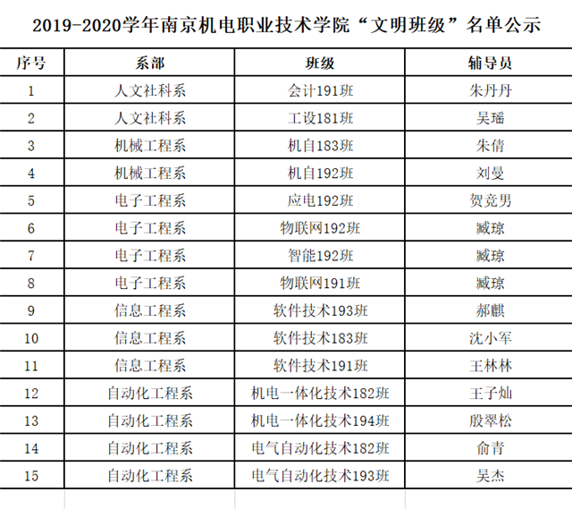 根据《开云手机官方版页面登录入口2019-2020学年三好学生、优秀学生干部、文明班级评选通知》规定,经学生本人申请、班级评议,系部审核推荐,学工处核准,学校审批,在公平、公正、公开的基础上,拟评选出以下个人和班级为2019-2020学年开云手机官方版页面登录入口“三好学生”、“优秀学生干部”、“文明班级”,现将名单公示如下。