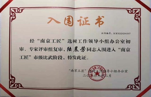 我院教师陆晨芳经“南京工匠”选树工作领导小组办公室初审、专家评审组复审,顺利入围进入“南京工匠”市级比武阶段,作为入围选手代表我院参加了本次机床装调维修工绝技绝活竞赛。