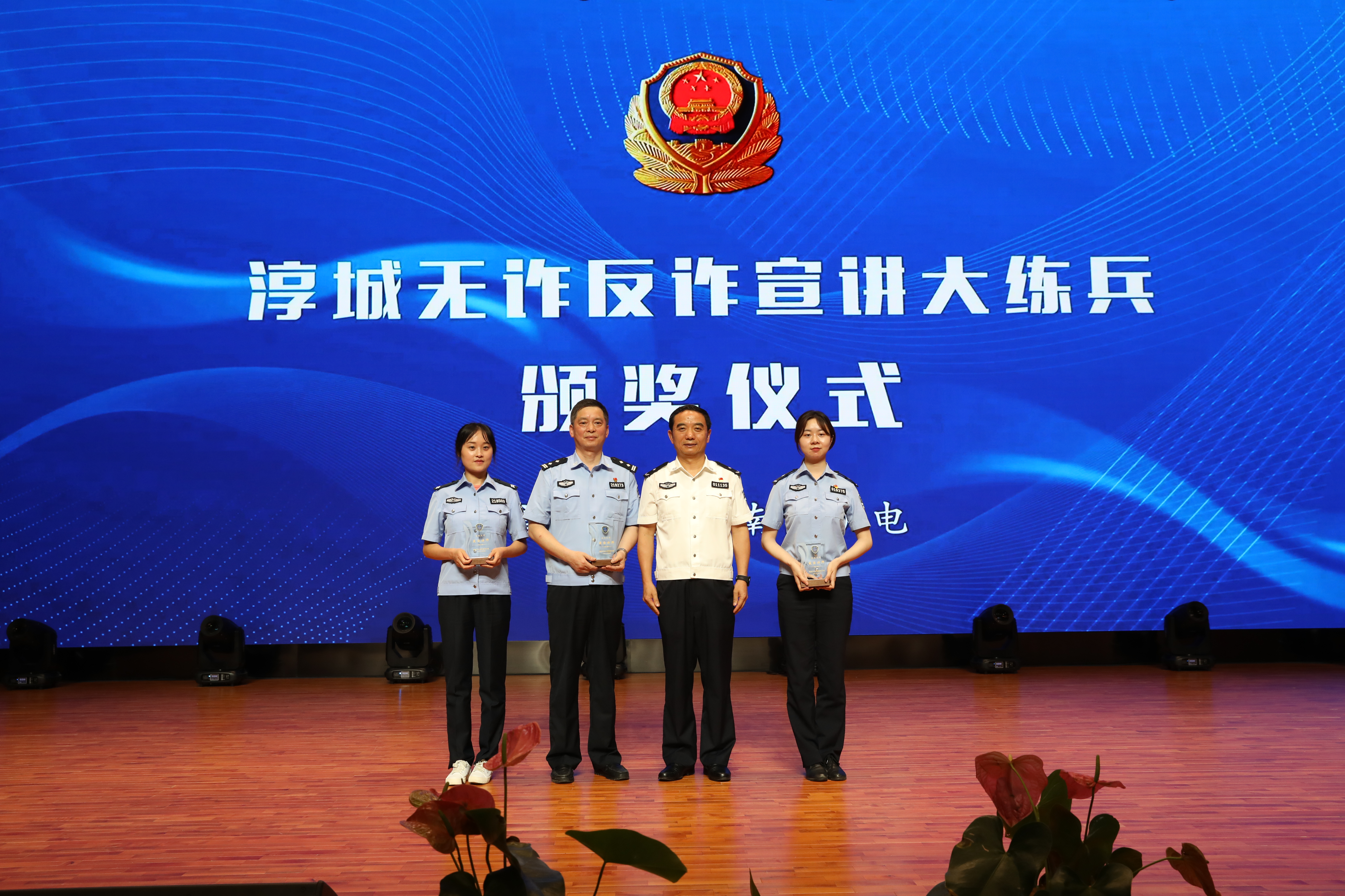 纪圣智为“淳城无诈讲师团”和学校“反诈志愿小分队”授牌,并为“最佳讲师”颁奖。