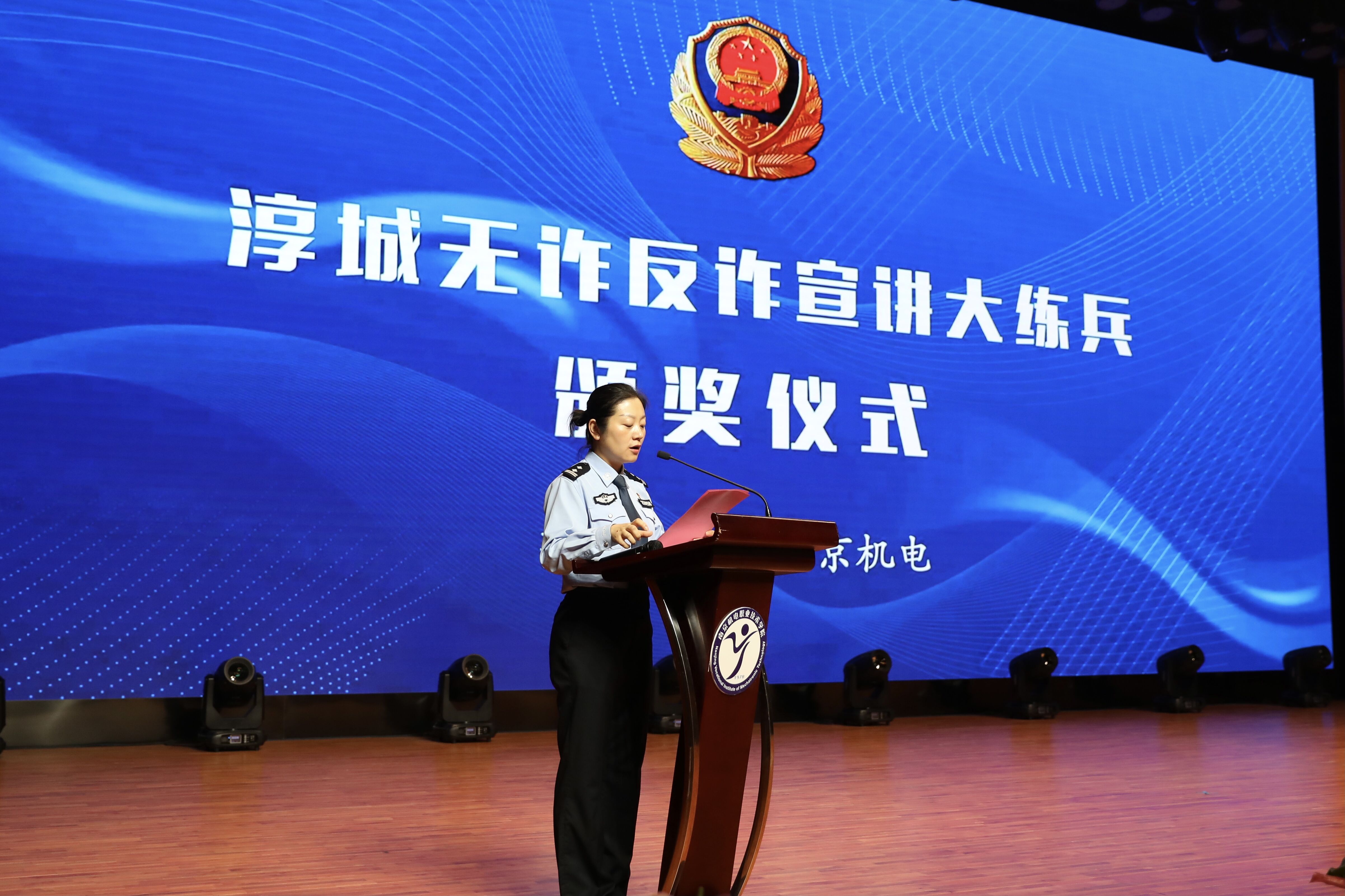 6月17日下午,我校与高淳公安联合开展的“淳城反诈宣讲大练兵”活动圆满收官。高淳区副区长、市公安局高淳分局党委书记、局长纪圣智,高淳分局党委委员、副局长史先英,学校党委委员、副院长赵学洪,学工处处长张宝中,高淳公安各所队、反诈中心分管领导及民警代表,各系党支部书记、反诈宣讲团志愿者小分队成员和学生代表等300余人参加颁奖仪式。仪式由高淳区合成大队大队长、反诈中心主任杨蓉主持。