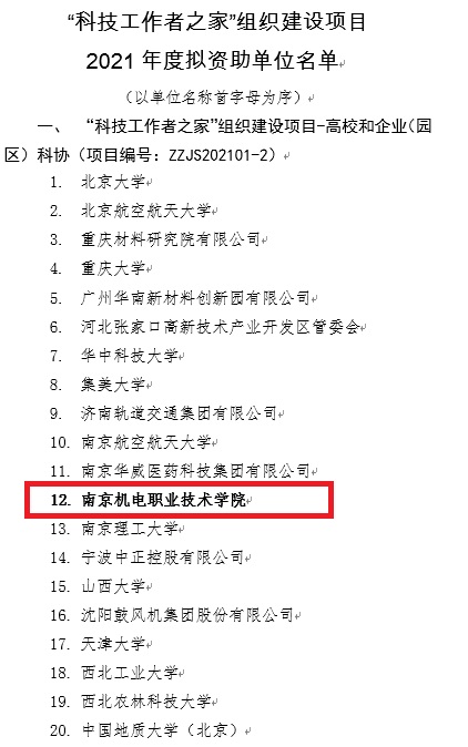 11月18日,我校成功立项中国科学技术协会“科技工作者之家”组织建设项目,成为2021年度全国唯一获得立项的高职院校。