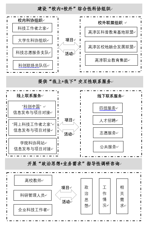 自《中国科协组织人事部关于开展“科技工作者之家”组织建设项目的通知》发布以来,我校科学技术协会根据《“科技工作者之家”组织建设项目管理办法》并结合高淳区科学技术发展需要,申报了“科技工作者之家”组织建设项目-高校和企业(园区)科协(项目编号:ZZJS202101-2),以习近平新时代中国特色社会主义思想为指导,重点围绕组织建设、联系服务、调研咨询等三个方面,采用“校内+校外”、“线上+线下”、“政治思想+业务需求”相结合的方法持续加强高校科协组织建设,充分发挥高校科协在推动科技创新、促进学校教育事业发展、服务地方经济建设中的作用,提升高校科协综合服务能力,打造有温度的科技工作者之家。