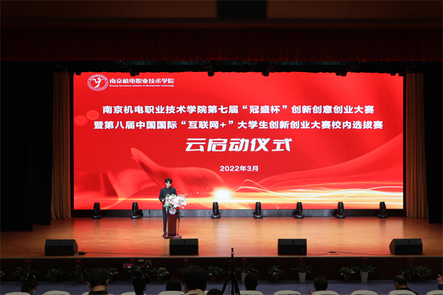 3月29日,由开云手机官方版页面登录入口和南京高等职业教育创新创业园联合主办,高淳区医疗器械行业协会协办,南京冠盛汽配有限公司冠名的第七届“冠盛杯”创新创意创业大赛暨第八届中国国际“互联网+”大学生创新创业大赛校内选拔赛启动仪式在开云手机官方版页面登录入口多功能厅举行。南京高等职业教育创新创业园主任孔桂红、南京冠盛汽配有限公司财务总监戢保平、开云手机官方版页面登录入口党委书记、院长周庆礼,党委委员、副院长刁爱军出席启动仪式。受疫情影响,本次大赛采用“云”启动仪式,在云端将创新的火种传递给每一位师生。
