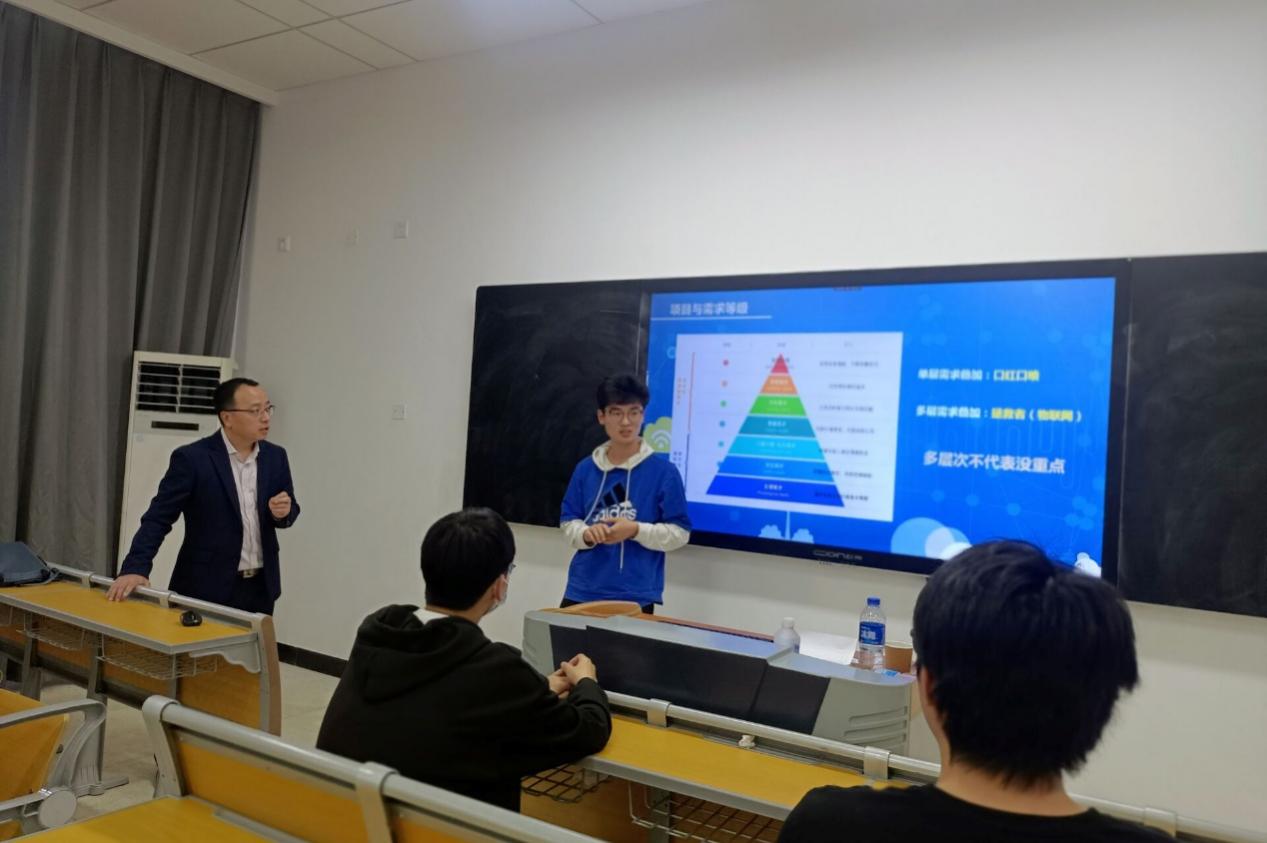 郑岩峰老师为创新制作类参赛团队带来《从需求出发的创新与创业》专题讲座。郑老师结合实际案例讲解了部分参赛作品的低分原因,剖析了项目与需求等级的联系,介绍了撰写商业计划书的注意事项。潘璐老师为创意设计类参赛团队带来《创意设计的开发流程与效果》专题讲座。潘老师从交互设计的发展、不同方法的应用、优秀设计的特点等方面介绍了创意设计主题,从项目型、混合型、产品型三种公司类型讲解了团队组织形式和流程,分享并点评了优秀设计案例。张壹帆老师为创业计划类参赛团队带来《数资时代初创科技企业的合规融资之路》专题讲座。张老师为同学们揭示了数字化、资本化时代科技企业的成长背景,展示了企业合规的创业与融资模式,介绍了测算创业资本需求量的方法,分析了不同融资渠道的要求与利弊,普及了全生命周期融资服务逻辑。讲座的最后,三位专家请聆听的同学上台陈述自己的项目,并为他们指点迷津。