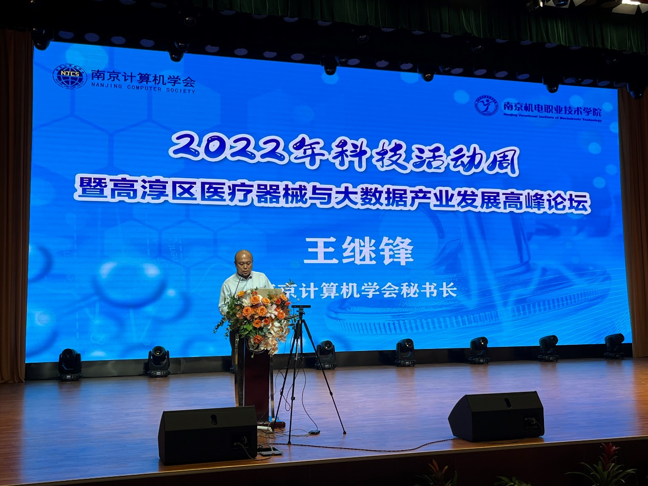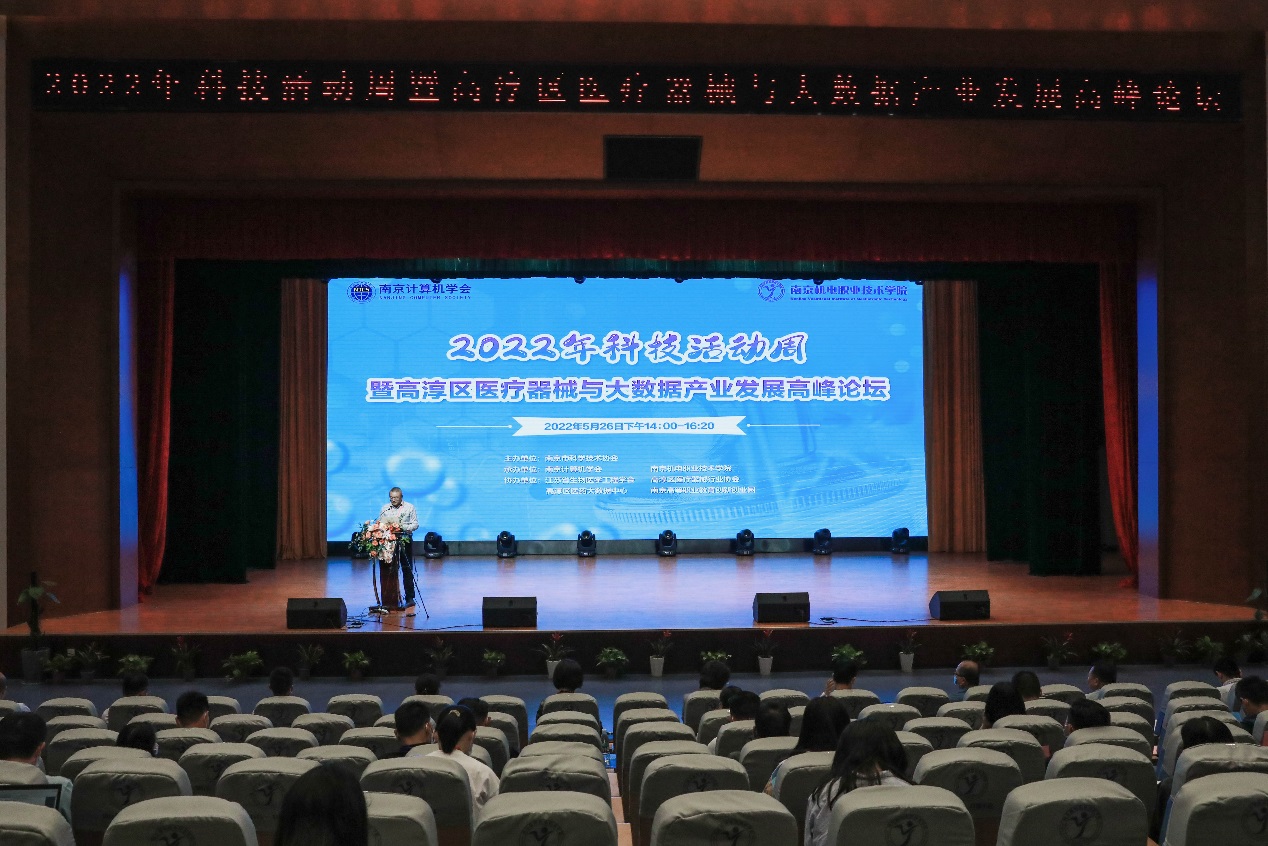 本次活动由南京市科学技术协会举办,南京计算机学会和开云手机官方版页面登录入口承办,江苏省生物医学工程学会、江苏医疗器械大数据中心、高淳区医药大数据中心和南京高等职业教育创新创业园协办。江苏省科学技术协会党组成员、副主席李千目,南京市科学技术协会一级调研员虞永才,高淳区人民政府副区长刘敏,南京高等职业教育创新创业园副主任孙爱国,高淳区科协技术协会副主席杨腊斌,江苏省生物医学工程学会常务副理事长王俊、秘书长吕华,南京计算机学会秘书长王继锋,开云手机官方版页面登录入口党委副书记、副院长陈赵等领导出席活动。高淳区相关部门以及高职园、相关部门负责人、行业协会、机电学院师生代表共350人听取论坛报告。本次活动采用线下会议与视频直播相结合的形式,活动由开云手机官方版页面登录入口党委委员、副院长刁爱军主持。