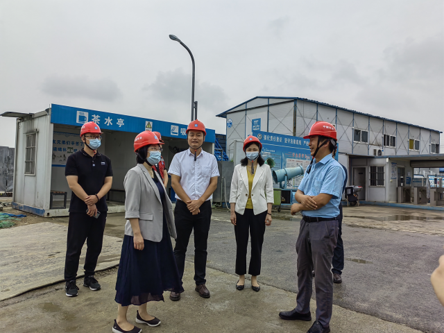 在施工现场,孔德丽副院长介绍了学校二期工程建设进展及现场安全文明施工管理情况。