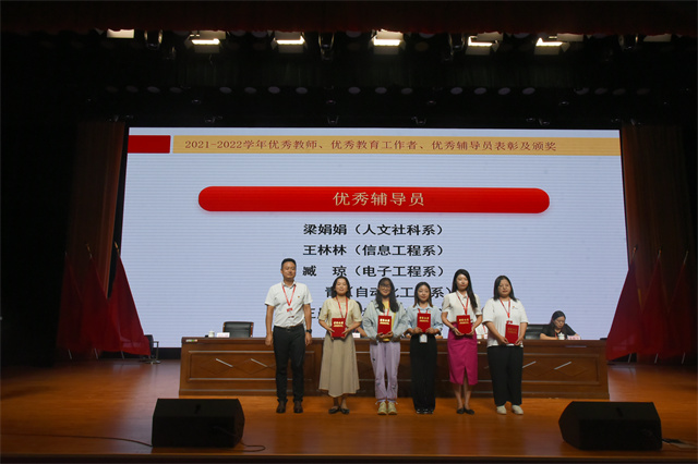颁奖环节最后对2021-2022学年学院优秀辅导员、优秀教育工作者、优秀教师进行表彰。