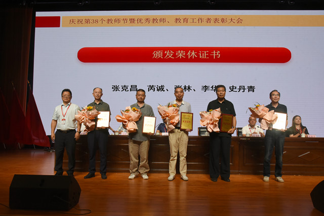 9月13日下午,学校在报告厅召开庆祝第三十八个教师节暨优秀教师、教育工作者表彰大会。全校教职工参加会议,大会由党委副书记、纪委书记、副院长陈赵主持。