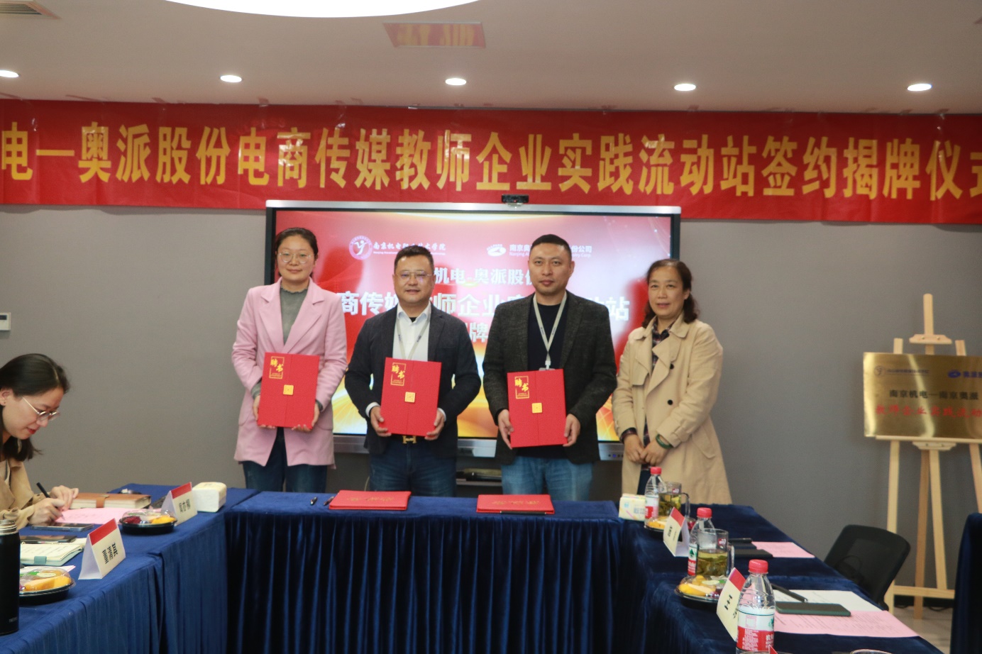 我校与南京奥派信息产业股份公司举行“南京机电-奥派股份电商传媒教师企业实践流动站”签约揭牌仪式