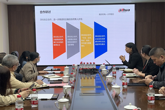 刁爱军强调,校企共育双师队伍是校企实现产教融合的重要环节。“南京机电-大华股份教师企业实践流动站”是电子工程系专业教师提升教科研综合能力的重要平台,进站教师要充分把握契机,扎根大华,掌握智慧物联网技术,与企业导师共同完成工程项目,以物化成果展现企业实践效果。期待与浙江大华技术股份有限公司江苏分公司通力合作,共同培养专业教师队伍,为物联网、智慧城市等领域协同共育高素质技术技能人才。