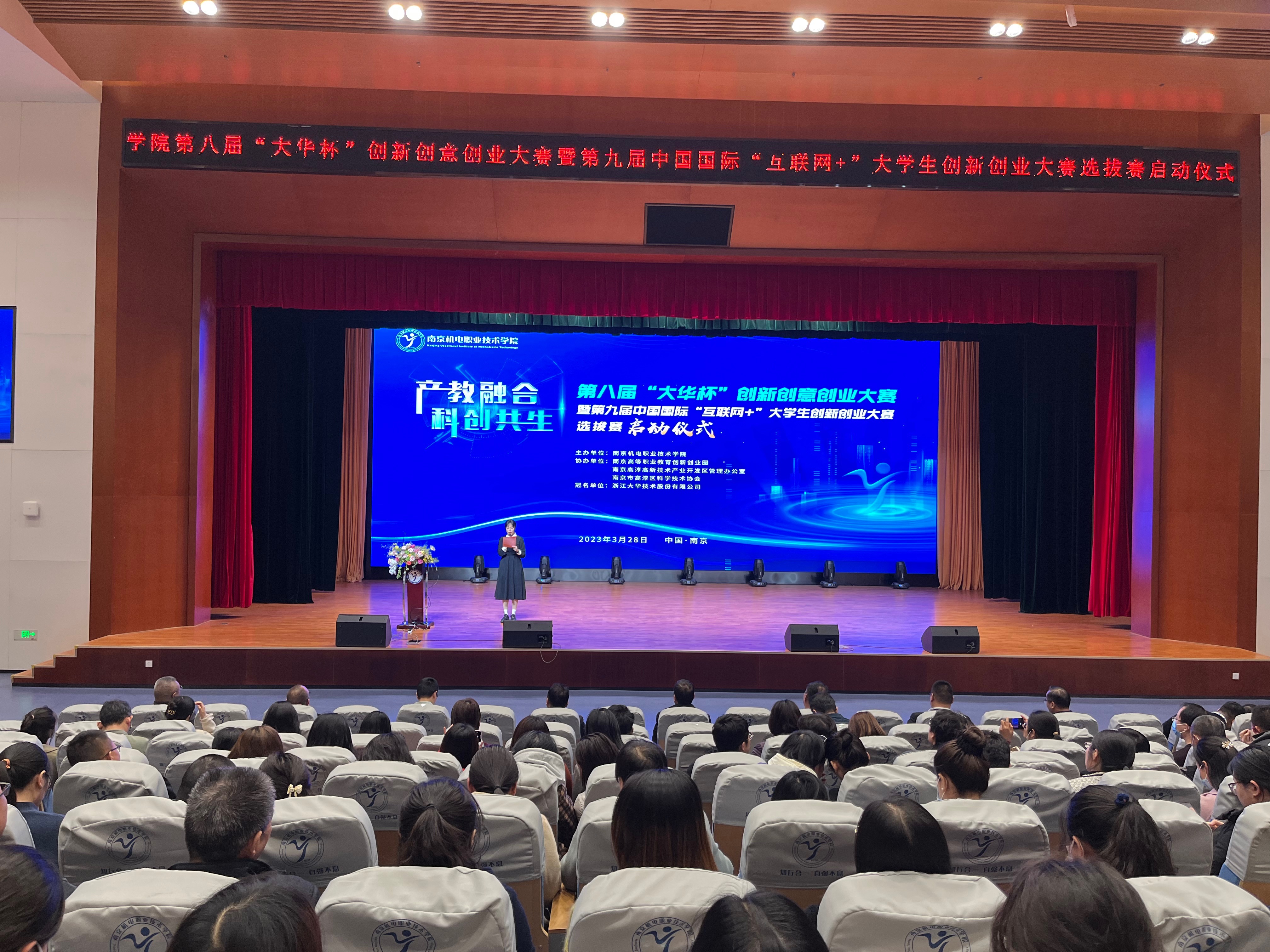 3月28日下午,学校第八届“大华杯”创新创意创业大赛暨第九届中国国际“互联网+”大学生创新创业大赛选拔赛启动仪式在青春剧场成功举办。南京高等职业教育创新创业园党工委委员、管委会副主任汪春荣,南京高淳高新技术产业开发区管理办公室分管负责人倪友谊,南京市高淳区科学技术协会副主席杨腊斌,浙江大华技术股份有限公司南京分公司总经理杨杰、南京办高溧组主任高国平,开云手机官方版页面登录入口党委委员、副院长郭朝辉,党委委员、副院长赵学洪,党委委员、副院长刁爱军,党委委员、副院长孔德丽,党委委员、工会主席姜振宇出席启动仪式。学校全体师生参与活动。