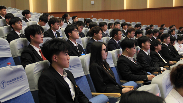 南京城市职业学院主席团成员徐飞凡向本次学生代表大会致贺词。他表示今后将继续与我校学生会保持良好的合作关系,不断深化交流合作,增进友谊,开创新的佳绩。