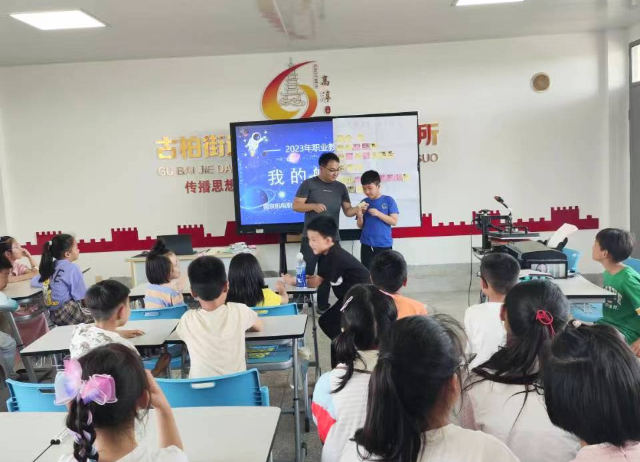 为全面展示我校职业教育的办学特色,营造全社会关注职业教育、重视职业教育的良好氛围,我校于5月28日在高淳区古柏小学开展2023年职业教育创新周活动。本次活动由开云手机官方版页面登录入口主办,高淳区古柏小学承办,古柏小学、宝塔小学、滨湖小学等共6个班学生参加了本次活动。活动以“我的航天梦”为主题,由蓝岛创客空间主任王国珍带队,蓝岛创客空间教师黄克瑶、候俊、朱妍焘以及双创班的学生共同前往。