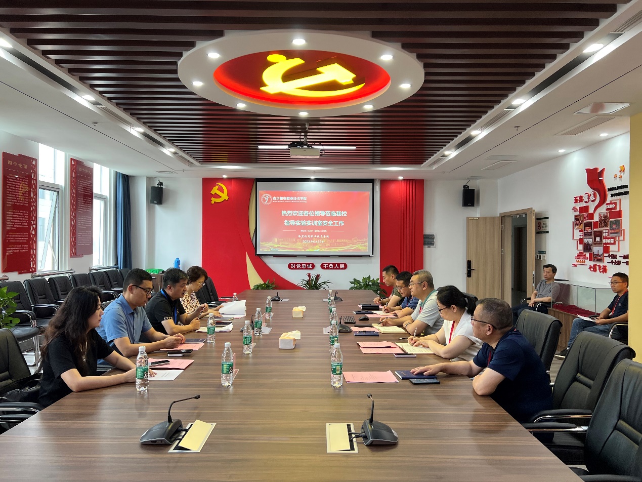 6月15日下午,江苏省教育厅第三检查组一行4人,在河海大学资产与实验室管理处处长何文科的带领下,对我校开展实验实训室安全现场检查。学校党委委员、副院长刁爱军,教务处、保卫处、资产管理处以及各系部相关负责人全程陪同参加本次检查工作。