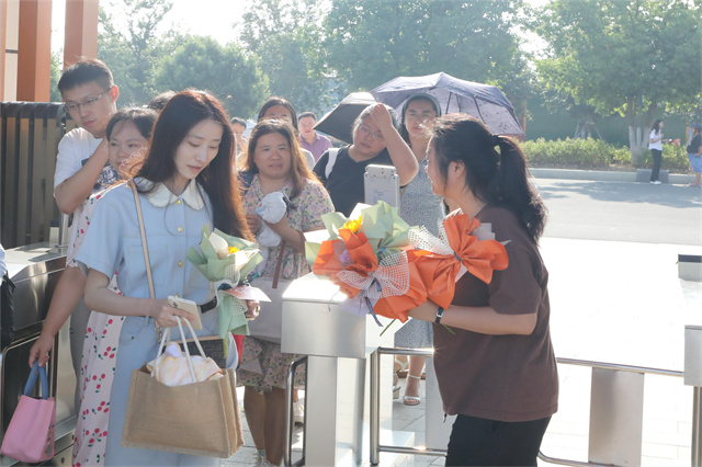 8号早晨8点,学校团委的学生们早早守候在东、南校门口,准备好包装精美的玫瑰与向日葵,迎接老师们的到来,只为让他们踏进校园的第一时间收到祝福。“老师,您辛苦了!”“老师,希望你每天都能拥有好心情!”,听着这一声声真挚的问候,接过一枝枝鲜艳的玫瑰花,老师们的脸上写满了幸福与感动。