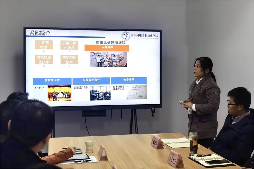 座谈会上,刁爱军从学校办学历史、办学规模、专业建设、教育改革、创客教育、产教融合成效等方面介绍了学校的整体情况,着重讲解了学校在产教融合成效方面的具体举措和在推动教育改革、创新创业教育等方面的积极实践以及学校校企合作的典型案例。供用电技术专业负责人武建卫就专业概况、师资力量、人才培养模式、实训室建设、校企合作、学生实习就业等方面进行了集中阐述。