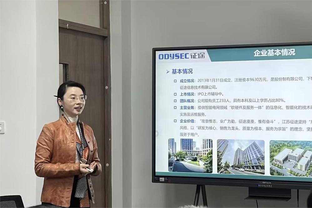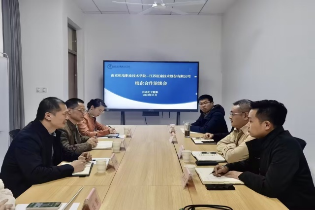 孙玉林一行充分肯定了学校在职业教育发展、学生培养、校园环境打造、实训室建设等方面所取得的成绩,并向学校介绍了江苏征途技术股份有限公司的发展概况、主营业务,主要技术产品以及对高职院校学生的能力需求和职业晋升体系。他们表示,智能电网发展势头良好,对供用电技术专业毕业生需求量大,公司也非常重视人才培养和储备,希望能与我校建立稳定的长效合作机制,携手培养面向新型电力系统的高素质人才。