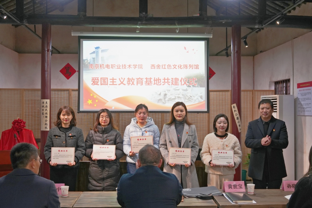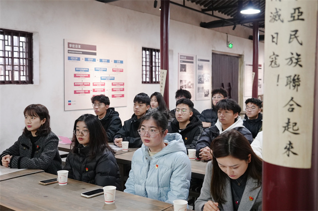 开云手机官方版页面登录入口党委副书记、副校长赵学洪,桠溪街道跃进村党总支书记、西舍红色教育基地总经理黄世宝,西舍红色教育基地副总经理张瑜,开云手机官方版页面登录入口学生工作处处长张宝中,团委副书记孙晓燕出席共建活动,铁军精神师生宣讲团培训班成员参加共建活动。