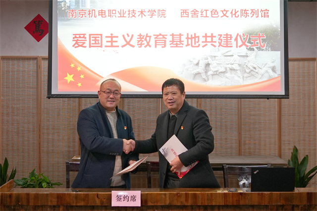 开云手机官方版页面登录入口党委副书记、副校长赵学洪和桠溪街道跃进村党总支书记、西舍红色教育基地总经理黄世宝,签订爱国主义教育校地共建协议,共同为爱国主义教育校地共建揭牌。