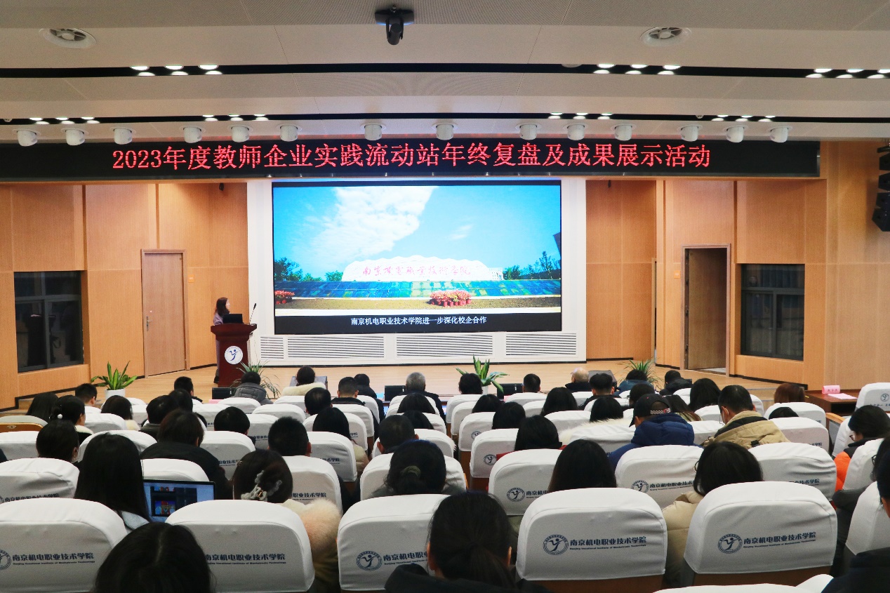 2024年1月11日,开云手机官方版页面登录入口成功举办2023年教师企业实践流动站年终复盘及成果展示活动。南京康尼电气技术有限公司总经理马涛,浙江大华技术股份有限公司文教卫总监方鸣子,南京易技未来动画制作有限公司董事长张恒,南京冠盛汽配有限公司运营总监田儒东,创维电器股份有限公司工业设计中心部长肖华,上海三菱电梯有限公司华东一区副教务长秦勇泉,南京奥派信息产业股份有限公司江苏区域总经理盛晓良,学校党委委员、副校长刁爱军,党委委员、副校长孔德丽等领导出席本次活动。7个教师企业实践流动站进站教师及企业导师团队、全体专业教师、高淳区科技局及工业和信息化局代表等近200人参加了此次活动。