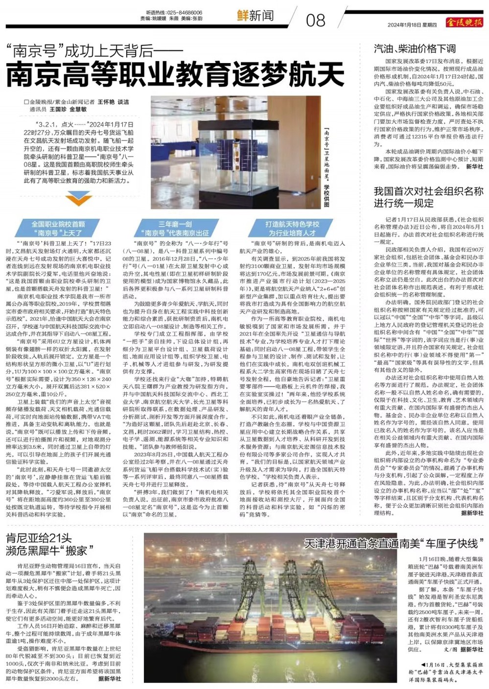 除了国家级媒体的广泛报道外,市级媒体南京日报、金陵晚报也针对南京号卫星发射进行系列深度报道,全文如下: