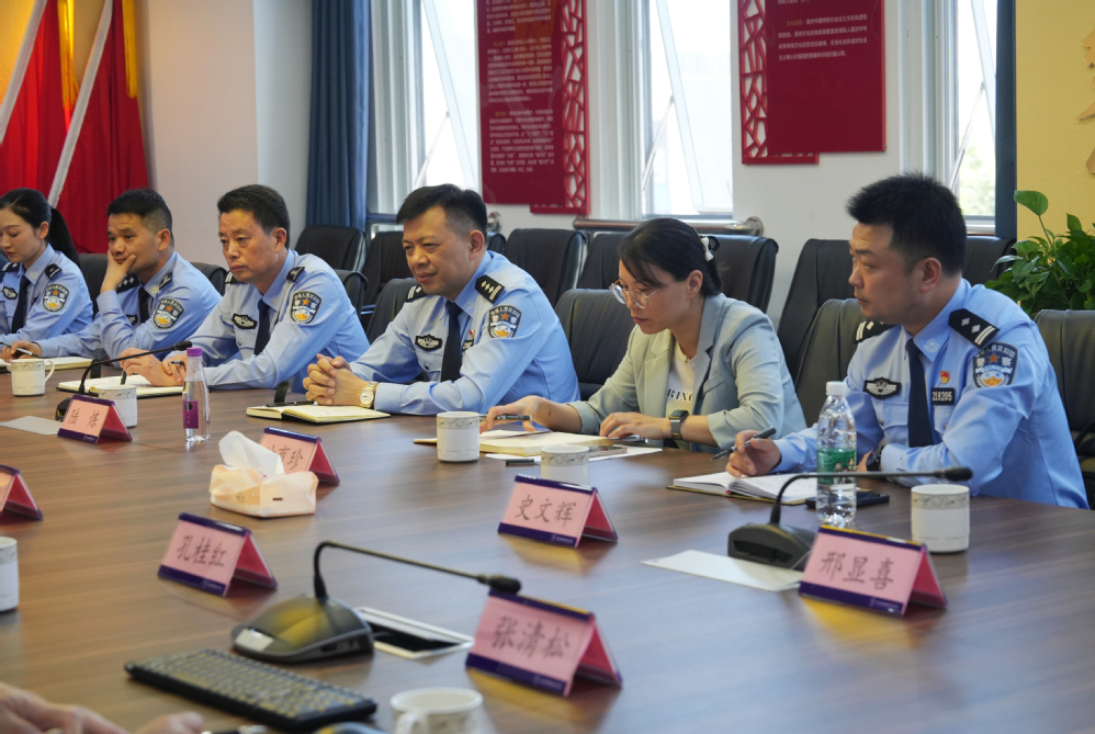 2024年5月14日高淳区政府党组成员、公安分局党委书记、局长陆炼带队,公安分局党委委员、副局长李春华,区内保大队、政保大队、交警大队、网安大队、古柏派出所等领导莅临我校专题调研校园安全工作,南京高职园党工委书记刘宜军,南京高职园党工委副书记、管委会主任孔桂红,高淳区教育局副局长甘育珍,南京高职园党工委委员汪笑云,学校党委书记、校长周庆礼,学校党委副书记、副校长赵学洪,党委宣传部,学工处,保卫处负责人等参加座谈。