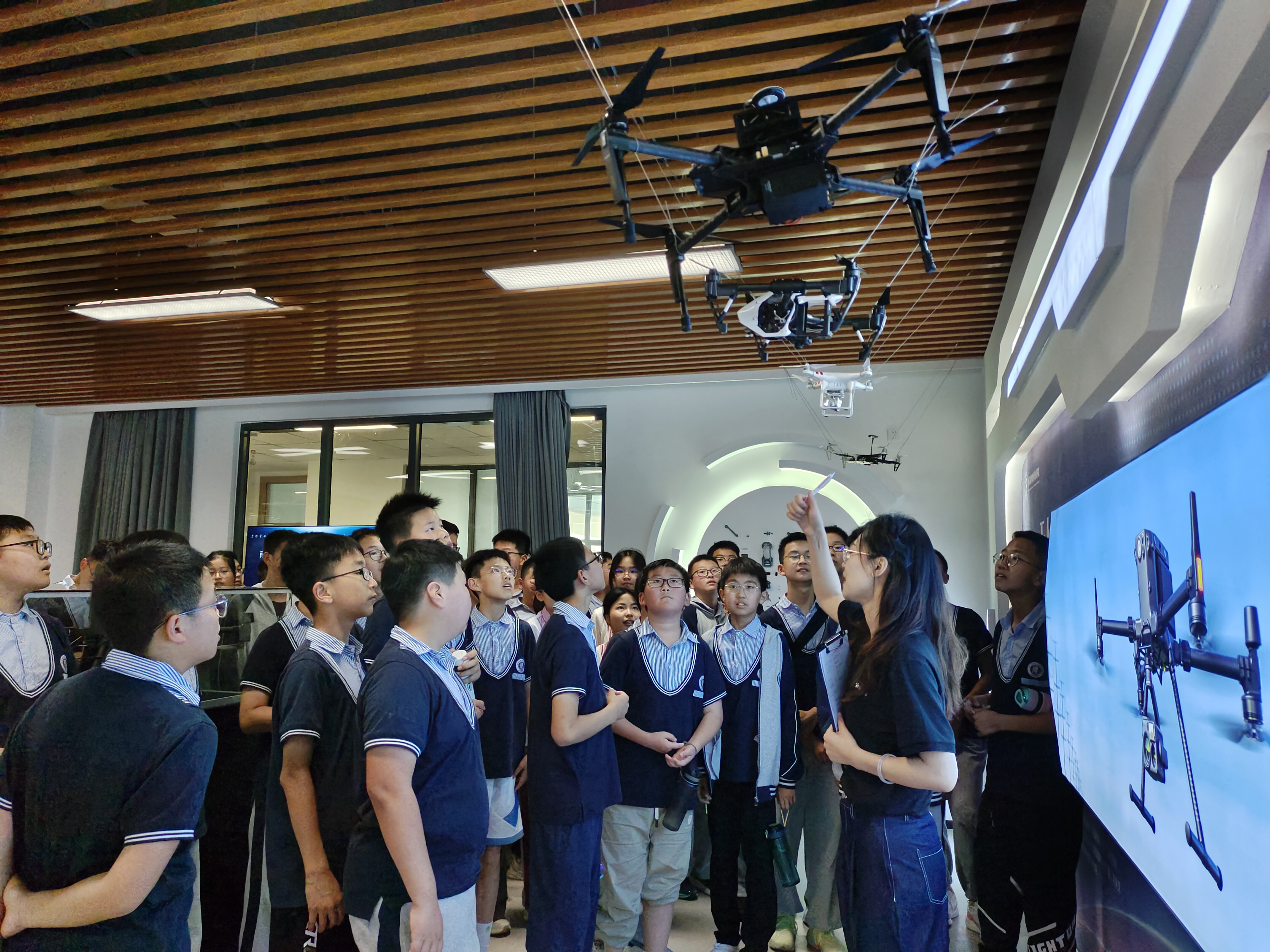 室外无人机场上,同学们兴致勃勃地观摩专业无人机飞手自如地操作着不同型号的无人机,并亲自体验了无人机航拍技术。同学们在亲身体验中感受到了科技的力量,脸上洋溢着满足和兴奋的笑容。